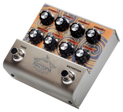 T-Rex Fuzztopia, Effect Pedal for Electric Guitar, Distortion / Fuzz, Vintage-style hybrid fuzz combined with classic distortion, Delivers everything from subtle bite to full, saturated fuzz and rich distortion, Controls: Fuzz, Tone, Blend, Volume, Distortion, Input and output: 6.3 mm jack, Input impedance @1 KHz: 1MOhm, Output impedance @1 KHz: 1KOhm, Current consumption: 60 mA, Power supply via 9 V DC mains adapter (2.1 x 5.5 mm barrel connector, centre negative - not included), Dimensions (W Ã H Ã D): 60 Ã 113 Ã 117 mm, Weight: 457 g, Made in Denmark