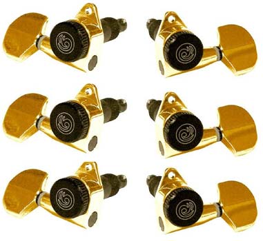 Daddario PWAT-333L, Auto Locking Tuning Machine Heads@+New patented design, automatically cuts off the protruding end of the string while changing.@+@+, Includes: 3 right, 3 left, Mounting diameter: 10 mm, Gear ratio: 18:1, Gold-plated