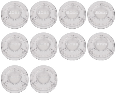 Boss FSC-10 Footswitch Cap, Footswitch Toppers; Molded from rugged, transparent polycarbonate that allows LEDs to shine through; Ensures good visibility and the expanded target area ensures comfortable operation and precision presses with any footwearâor none at all; Set of 10 pieces