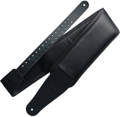 Richter Strapzilla V Black; genuine leather for guitar and bass; comfortable strap with heavily padded shoulder section; breathable nappa leather; pad width: 11 cm, total thickness: 3.5 cm, soft padding, strap width: 9 cm, adjustable length: 116 - 185 cm; Color: Black