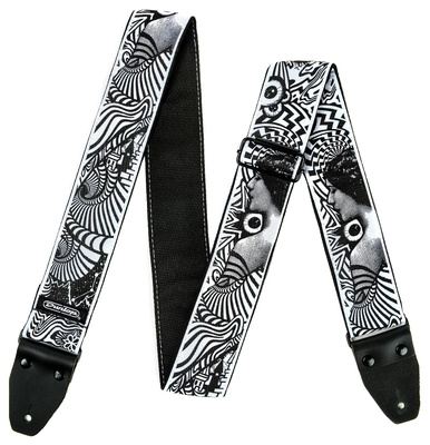 " Dunlop I Love Dust Strap Vortex, Guitar strap, Material: Nylon, Headspace Green Motif graphic by UK artist ilovedust, Length adjustable: 84 - 152 cm / 33 1/16""- 59 13/16"", Width: 5 cm, Real leather ends, Colour: Black, Made in Canada"