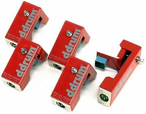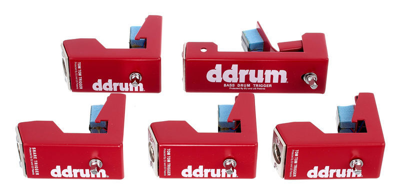 DDrum DDTKIT Acoustic Trigger SetPro, Drum Trigger Det, For a five-piece drum set, Compatible with most drum modules, Consists of 1x bass drum trigger, 1x snare drum trigger, and 3x tom tom triggers, The snare drum trigger features dual triggering (rim and head can be set with seperate sounds), For clamping to steel hoops on acoustic drums, Can be used with almost allnormal drum heads as well as mesh heads, XLR output@+*Note:* Cable is not included@+@+