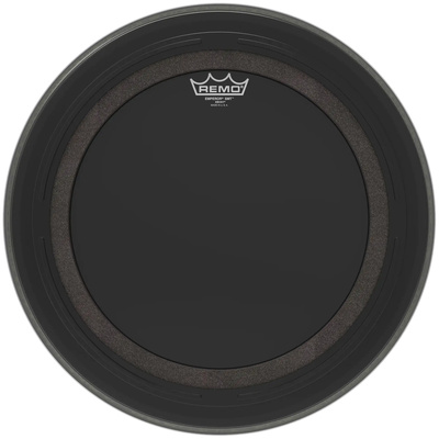 " Remo 18"" SMT Emperor Ebony BD; Bass Drum Head; BB-1018-ES-SMT; Size: 18""; Ebony finish; double-ply; Remo SMT: Sub Muffl Technology; pre-muffled head; balanced high and mid frequencies with powerful bass and a broad tonal spectrum"