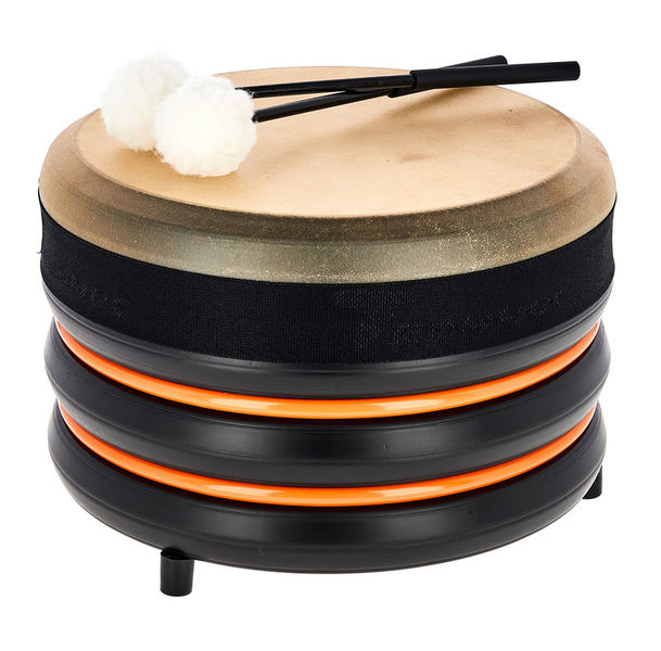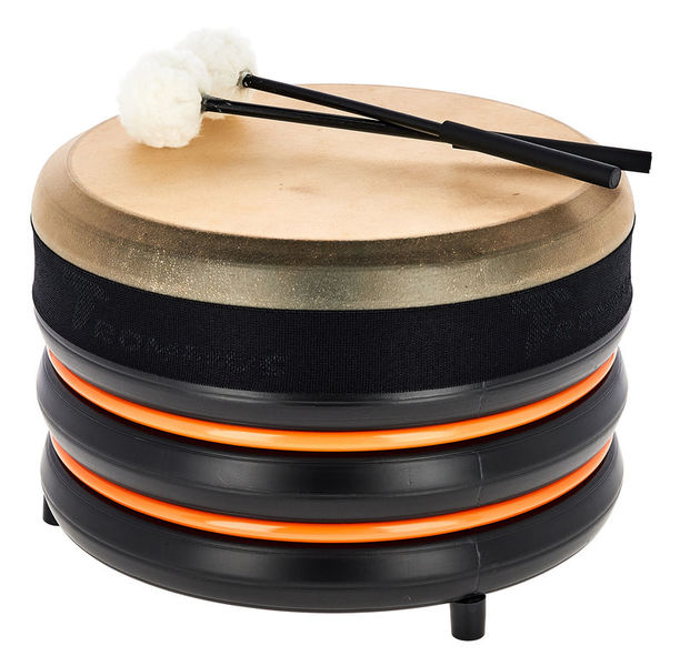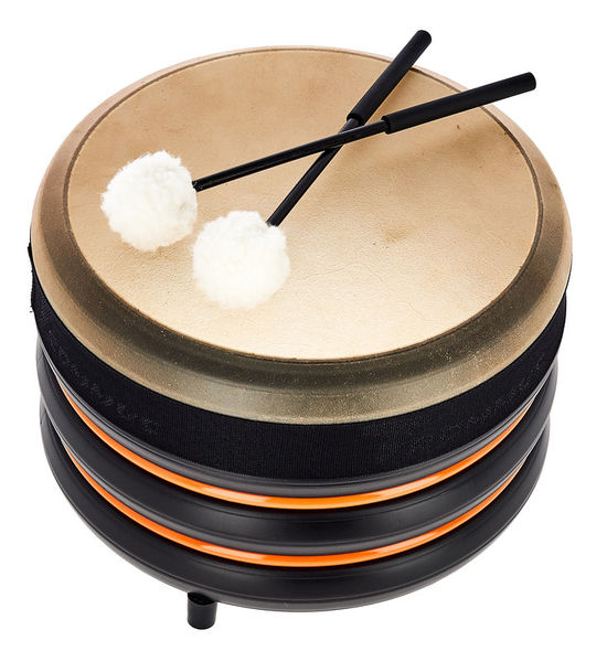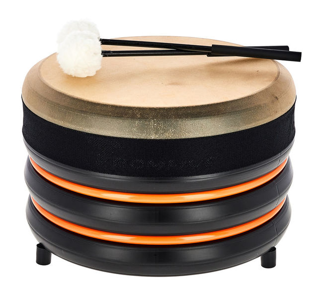 Trommus C1u Percussion Drum Small, Drum, Small model, Colour: Orange, Extremely lightweight synthetic body covered with natural skin, Non-breakable material, Tested according to EN71 standard and therefore ideal for early education, group lessons and preschool classes, Height: 18 cm, Diameter: 28 cm, Incl. 1 pair of 25 cm long plastic mallets