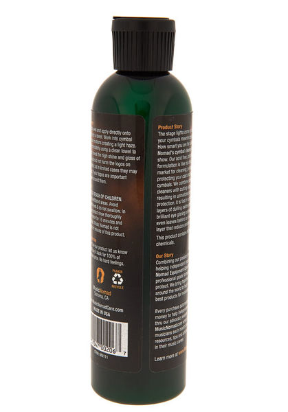 MusicNomad Cymbal Cleaner, Cymbal Cleaner, Polish and protection, For cast bronze or bronze cymbals with a brilliant finish, Cleans, polishes and protects the finish with microfine polishing powder, Removes oxidation and restores the original shine, Leaves an invisible protective layer that reduces oxidation, Acid-free special formula contains no aggressive or corrosive chemicals, Pleasant smell, 100% PET bottle, Contents: 240 ml (8 oz.)
