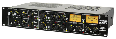 Drawmer 1970, Dual FET Compressor and Preamplifier, Two microphone preamps, Separate XLR inputs for line and microphone, DI input for instruments with EQ for bass and treble, True bypass of the compressor section, Standard controls like Threshold, Ratio, attack and release as well as an 8-stage LED display to show the level reduction per band, Backlit analog VU meter level displays with switchable +10 dB rescale mode, Noise-free switching on and off thanks to time-controlled relays in the outputs, Integrated linear power supply with low-interference toroidal, Transformer and voltage selection switch, Mic / Line connection: XLR balanced, Aux input: 6.35 mm jack, unbalanced, Input impedance line: 20 kOhm, Input impedance Mic: 200 ohms to 2.4 kOhm, Input impedance instrument: 2.2 MOhm, Mic ON: -130 dB, Maximum input level: +21 dBu, Output impedance: 100 ohms, Maximum output level: +21 dBu, Frequency response: 20 to 20,000 Hz, +/- 0.5 dB, Crosstalk: <-75 dB, Signal to noise ratio:> 93 dB, THD + N: 0.1% (0 dB), Power supply: 115 or 230 V, 63 VA, Dimensions (W x H x D): 482 x 88 x 270 mm, Weight: 4.2 kg