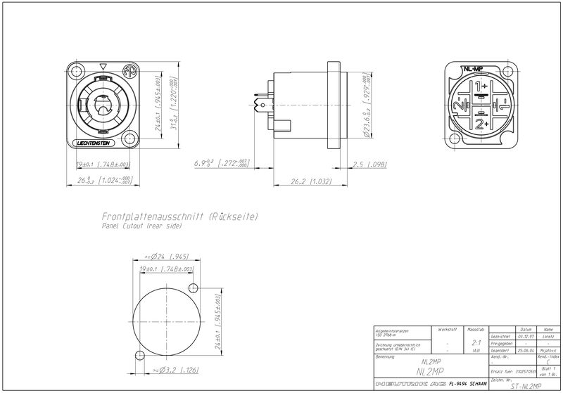 Neutrik NL2 MP D-TYP Speaker Twist socket - 2 pole speaker connector (only suitable for 2 pole connectors), fast-on connection