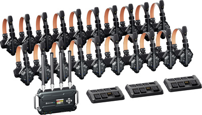 Hollyland Solidcom C1 Pro RoamingHub 20S, Digital Wireless Intercom System, Set consists of a Solidcom Roaming Hub and twenty wireless single-ear remote headsets, DECT 6.0 support, Transmission frequency: 1880â1930 MHz, Range: 500 m, Transmission power: max. 21 dBm, Bandwidth: 1.728 MHz, Modulation: GFSK, Frequency response: 100 Hz â 7 kHz (±3 dB), RF sensitivity: -90 dBm, SNR: >55 dB, Antenna system: Omnidirectional fibre optic antennas, Antenna gain: 4 dBi, App control via integrated Bluetooth module, Hub connections: 2x LAN (RJ45), 1x USB-A, 1x USB-C, 1x DC In, 1x 4WIRE, Compatibility: Solidcom C1 and C1 Pro, Headset battery life: approx. 10 hours (2.5 hours charging time), Dual-Mic Environmental Noise Cancellation (ENC) technology, Electret microphone, Push-to-talk function, Wind noise removal, Max. sound pressure level: 94 dB SPL, Latency: < 35 ms, Hub dimensions (W x H x D): 302 x 182 x 64 mm, Hub weight: 1.8 kg, Weight per headset: 170 g, Colour: Grey@+*Set consists of:*, 1x Solidcom Roaming Hub, 4x Solidcom Roaming Hub Antenna, 1x G-mount battery plate, 20x Solidcom C1 Pro wireless single-ear remote headset, 40x Solidcom C1 Pro battery, 3x Solidcom C1 Pro 8-slot charging case, 20x Solidcom C1 Pro over-ear earmuffs, 20x Solidcom C1 Pro on-ear ear muffs, 20x Solidcom headset ear pads, 20x Solidcom C1 Pro microphone cushion, 1x Solidcom headset sticker, 3x 12V/2A DC2.1 power supply unit, 1x USB type-C cable, 1x Solidcom C1 Pro Roaming Hub20S hard-shell carrying case, 1x User manual, 1x Warranty card