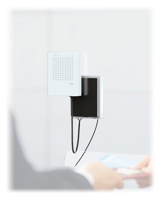 WHD VoiceBridge 2. Generation, Contactless, fully Automatic Intercom System, Speech intelligibility despite hygienic barriers, Smart solution for surgeries, shops, supermarkets or even visitor boxes in senior citizens' and nursing homes, Infrared sensors detect whether a person is standing in front of the unit, Microphones with AEC technology (Acoustic Echo Cancellation) and NR technology (Noise Reduction), Weight per microphone unit: 160 g, Dimensions: 86 x 111 x 18 mm, Colour: White, Incl. Power supply unit, 2 m mains cable and 1 m connection cable, Suitable battery: #507907# (not included)