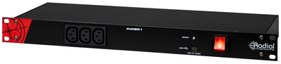 " Radial Engineering Power-1, Power Conditioner and Overcurrent Protection, With RF filter, Resettable 10 A circuit breaker, With premium âMOVâ (metal oxide varistor), Power connections (IEC 60320 C13): 3 on front, 10 on rear, Charging port: USB-C, Voltage range: 220â240 V, High-suppression RF interference filter, On/off switch on front panel, LED display for overvoltage protection, Installation size: 19"" rack format / 1 U, Dimensions (W x D x H): 483 x 162 x 38 mm, Weight: 2.58 kg, Made in Canada"
