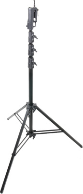 " Kupo 543MB Master High Cine Stand B, Light Stand with Levelling Leg and Triple-Function Head, With large brake shoe locking mechanism, Double leg braces, Levelling leg, Suspension for storage and eyelet for wind protection, Maximum load capacity: 40 kg, Maximum height: 445 cm, Min. operating height: 149 cm, Closed length: 150 cm, Three riser tubes, Four sections, Diameter of centre columns: 45 / 40 / 35 / 30 mm, Diameter of the feet: 25 x 25 mm, Diameter of the base: 138 cm, Mount: Triple function head with junior (1 1/8"") and baby receiver (5/8"") as well as a multi-directional 5/8"" (16 mm) spigot, Material: Powder-coated steel, Weight: 12.5 kg, Colour: Black"