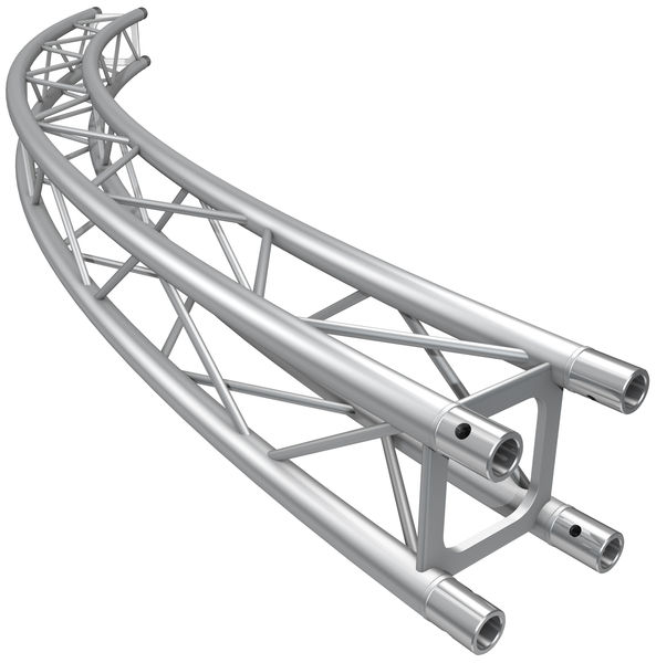 Global Truss F14R20-45 Circ. Element Ã4.0m, Circular truss piece F14, Section: 45° (1/8 circle), Circular diameter: 4 m, Decorative truss suitable for home use, display applications, shop and trade, advertising, etc, 4-Point traverse, Edge size: 10 cm, Diameter of main pipe: 20 mm, Wall thickness: 2 mm, No single brace, but 5 mm snake snake, 8 Pieces are needed for a complete circle, Measurements (L x W x H): 1500 x 100 x 100 mm, Weight: 3.10 kg, With conical connector set (quick connector)