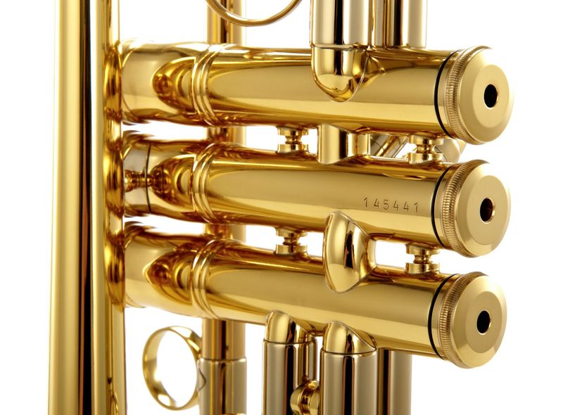 Kühnl & Hoyer Malte Burba Universal 110 14, Bb Trumpet@+Response and intonation, especially in the middle and high registers are outstanding. The gold brass mouth pipe and the gold brass tuning slide ensure durability and robustness.@+@+, ML Bore, Brass bell, Gold brass tuning slide and gold brass mouth pipe, Bell Ã: approx. 125 mm, Hand lapped stainless steel valves, 2 Water keys, Fine rubber seals for all three valve covers, With heavy caps adjustable to the personal needs of the player, With gold lacquer finish, Incl. 3C mouth piece and practical, elegant backpack case with space for sheet music and stands