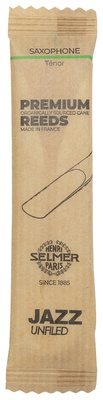 " Selmer Premium Jazz Tenor Sax 2.0, Reed for Tenor Saxophone, Strength: 2.0, Jazz Cut, unfiled, From wild-grown ""Arundo Donax"", Cane from biological-organic cultivation, Sustainable sources from the south of France, High fiber density due to one year longer growth, Laser-tested cut, 100% plastic-free and environmentally friendly packaging: Box made of recycled cardboard, flowpack made of kraft paper, compostable sheet holder, Made in France, Package quantity: Five pieces"