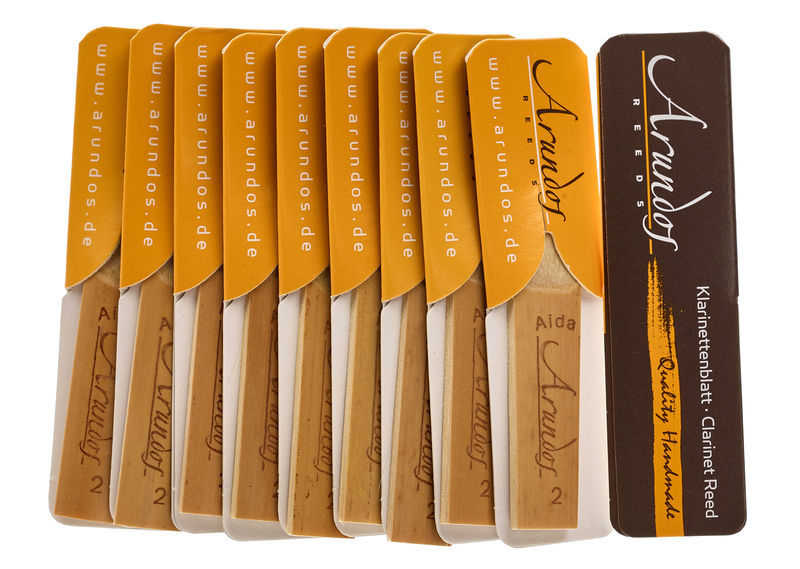 Arundos Reed Bb-Clarinet Aida 2,0, Reeds for German B Flat Clarinet, Aida, Strength: 2.0, Easy response, For short to medium tip, Noble sound, Good control in all registers, Made of the finest French cane, Made in Germany, Set of: 10 Reeds