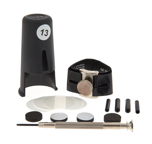 GF MX-05M Ligature Bass-Clar. S, Ligature for Bassett Horn, Maxima Silver Line, Optimal fit and free swinging behaviour, Including 6 oscillating rollers - this allows for the individual extension of the GF Maxima band by 12.5 mm, so that the correct tracking distance can be adjusted for each mouthpiece, Double play: Vertical pressure of the reed by means of a stainless steel pressure plate or pressure by the GF system tape., The printed thread cross facilitates both the setting up of the reed and the symmetrical seat of the ligature, Including mouthpiece capsule, watchmaker's screwdriver to change the oscillating rollers, Safety stickers for sticking on the mouthpiece back (4 units), foam rubber glue sticks for sticking into the capsule (4 units)@+*Fits like a tailor-made suit for the following mouthpiece types:*@+@+, ESM and ESM Jazz, Yamaha and Yamaha Custom, RC-Meyer, G4-Meyer, Pomarico and Pomarico Glas, Claude Lakey and Lakey Jazz, Vandoren Jumbo, V5 and Ebonite V16, Selmer SD-20, SD-80/S-90/200 and Super Session, Zinner AS 61B and AS 77, Lebayle, Rico Royal, Briton, Keilwerth, Runyon, Francois Louis, Berg Larsen, Brillhart, Yanagisawa, Otto Link, Caravan