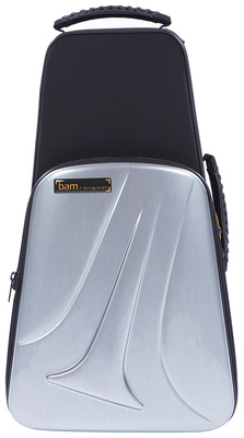 bam New Trekking Single Trumpet; Case for Single trumpet; Inside cradle made of injected high density polyurethane foam, protecting the instrument against thermal shocks; Large accessory compartment (can fit up to three mutes); Space for one mouthpiece; External 1000 denier water-resistant Cordura fabric; two retractable padded backpack straps; Side handle; Zipper; Large expandable external pocket for sheet music; Additional external rain cover; Inside dimensions : Body Length: 490 mm; Bell: 130 mm;Outside dimensions: 560 x 280 x 230 mm; weight: 2.7 kg; color: brushed aluminium