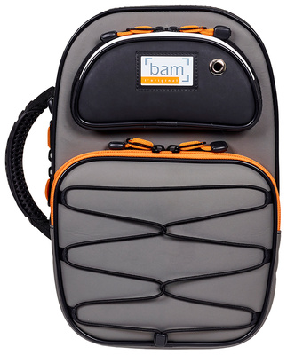 bam Peak Performance Bb-Clarinet; Case for Bb clarinet; Inside cradle made of injected high density polyurethane foam, protecting the instrument against thermal shock; Dedicated space for two barrels; Water-resistant Cordura fabric; two padded backpack straps, adjustable, removable; Side handle; Zipper; Accessory pocket and sheet music pocket; Inside dimensions: Upper Joint: 220mm; Lower Joint: 255mm; Bell: 100 mm; Outside dimensions: 380 x 250 x 130 mm; weight: 1.4 kg; color: black & grey