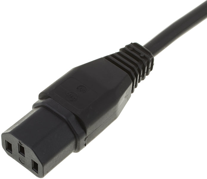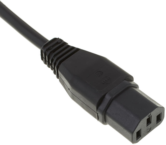 Stairville adapter cable safety plug to IEC; 3.0m PVC cable H05VV-F 3G1.00mm²; Earthing contact 90 ° angle connector to IEC connector C13