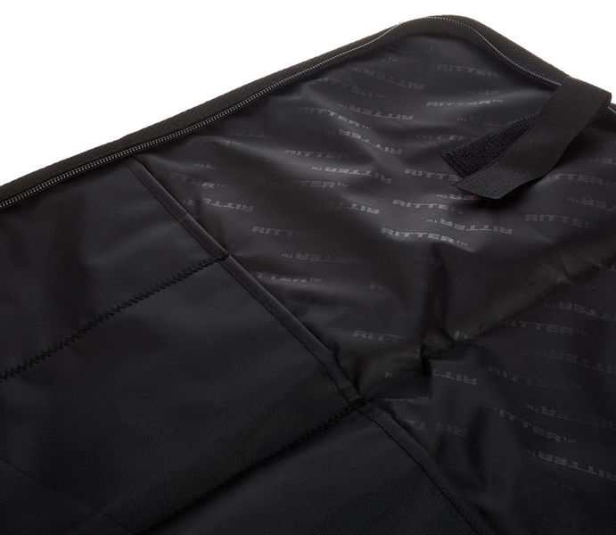 Ritter RDP2 Stick Bag BRD, Gig Bag for Drumsticks, 3 mm High density padding, Made of water-repellent 420D nylon material, Embedded reflectors for road safety, Comfortable handle, 4 Internal pockets and 2 larger pockets, Inner dimensions in mm: 450 x 190 x 20, Weight: 0.30 kg, Colour: Black / Red