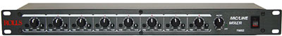 " Rolls RM-82, Mixer, 8 XLR microphone inputs, Input level with trim controls, Equaliser (treble and bass reduction), Each channel features individually switchable +48 V phantom power, 8 Jack inputs (internally switchable as inserts or direct outputs), RCA prefade output (pre-master volume), for recording, monitoring or cascading, RCA AUX bus input for cascading, also can be used as a ninth unbalanced input, Microphone- or line level output, Robust design and steel-sheet rack housing with 1 U, Dimensions: 48 (19"") x 4.5 (1 U) x 15 cm, Weight: 3 kg"