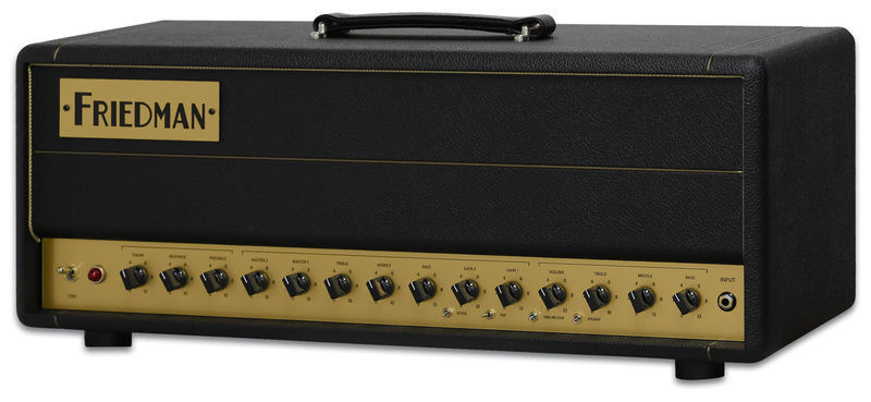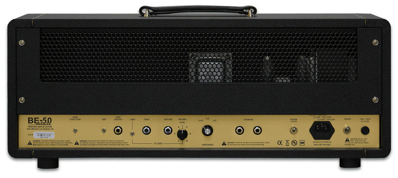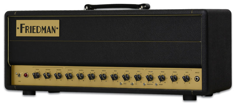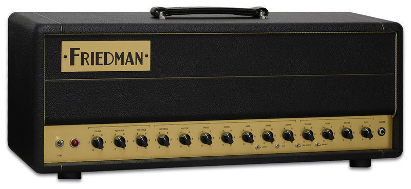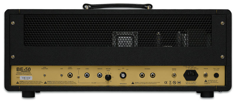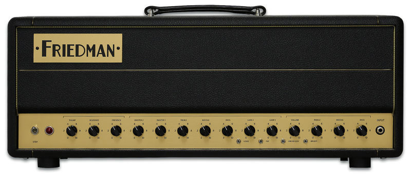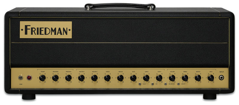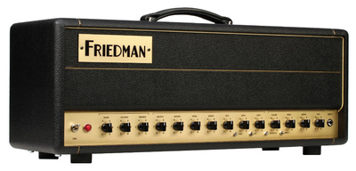Friedman BE-50 Deluxe, Tube Amp Head For Electric Guitar@+By combining the famous Friedman Buxom Betty amplifier's clean channel with a pair of BE (Gain 1) & HBE (Gain 2) style channels, the BE-50 Deluxe offers a wide range of Friedman guitar sounds.@+@+, 3 Channels: Buxom Betty Clean, BE Gain 1 and HBE Gain 2, Power: 50 Watts, Preamp tubes: 4x 12AX7, Power tubes: 2x EL34, Controls for channel 1: Bass - Middle - Treble - Volume, Channel 2: Gain 1 - Gain 2 - Bass - Middle - Treble - Master 1 - Master 2, Controls for channel 1 & 2: Response - Thump - FX Loop Return Level, Switches: Bright - Channel - Fat - Voice - Gain Structure - Loop - Power High/Low - Power On/Off - Standby, Loudspeaker outputs: 4, 8 & 16 Ohms (2x 6.3 mm jack), Connections: Input (6.3 mm jack) - FX Loop Send & Return (2x 6.3 mm jack) - Foot switch Boost (6.3 mm jack) - Foot switch (6.3 mm stereo jack), Dimensions (W x D x H): 673 x 216 x 267 mm, Made in USA
