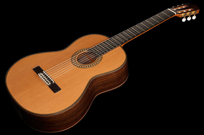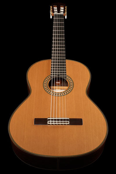 Amalio Burguet 2DV Cedar, Classical Guitar, Made by Damián Burguet, Design by Vanessa Burguet, Solid cedar top, Back and sides: Solid rosewood (Dalbergia latifolia), Ebony fretboard, Scale: 650 mm, Nut width: 52 mm, Nut and saddle made of bone, Finish: Natural high gloss