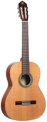 " Ortega R18G, Classical Guitar, Top: Solid cedar, Back and sides: Bubinga, Neck: African mahogany, Fingerboard: Rosewood, Scale: 650 mm (25.59""), Nut width: 51 mm (2.01""), 19 frets, Chrome Lyra-design tuning pegs with white tuning buttons, Strings: Knobloch EDQ 34.0 MED/HIGH Tension, Colour: Natural high-gloss, Includes Pro gig bag"