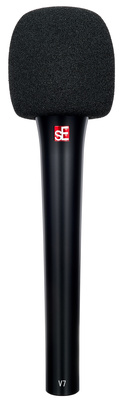 SE Electronics V7 ENG, Broadcast Microphone, Dynamic broadcast microphone with supercardioid polar pattern, Based on the DMC7 capsule, High feedback suppression and excellent off-axis performance, Developed for ENG and EFP applications, interviews and reports, Extended handle for broadcast flags, Patented internal capsule bearing for low handling noise, Robust full metal housing with spring steel microphone basket, Integrated and external windscreen for reducing wind and plosive sounds, Gold-plated XLR connector, Frequency response: 40 Hz - 19,000 Hz, Sensitivity: 2.0 mV/Pa, Impedance: 300 ohm, Polar pattern: Supercardioid, Dimensions (L x Ã): 250 x 54 mm, Weight. 0.32 kg