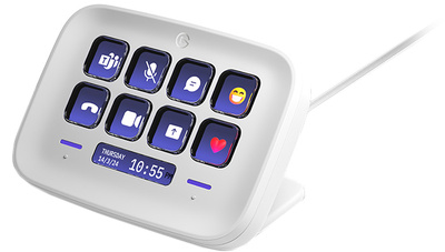 Elgato Stream Deck Neo WH, USB 2.0 controller with 8 freely customisable LCD buttons for controlling programmes via shortcut function, Multiple key assignments via page function, Two touch-sensitive buttons for turning pages (forward/backward), Customisable info bar for displaying the time or other information, Ajustable feet, Fixed USB-C cable, 90 cm, Power supply via USB-C, For Windows 10 (64-bit) or newer, and macOS Monterey 12 or newer, Dimensions (W Ã H Ã D): 107 Ã 79 Ã 26 mm, Weight. 210 g, Colour: White