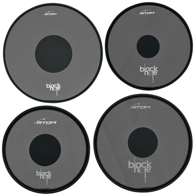 " RTOM Black Hole Pra.Pad Bundle Stu.@+*Bundle offer comprising*, RTOM 20"" Black Hole Practice Pad V2@+*Practice Pad for Kick Drums*, Size: 20"", Reduces the volume of the drum by 80%, Keeps the basic sound of the drum, 3 Adhesive foam strips for fixing inside the kick drum hoop, No removement of the drum head needed, Desired head tension of the mesh head can be adjusted with just one screw, RTOM 14"" Black Hole Practice Pad@+*Practice Pad*, Size: 14 "", Reduces the intrinsic volume of the drums by up to 80%, Basic sound of the drum is retained, Is simply put on - no head removal needed, Desired tension of the mesh head can be adjusted with just one screw, RTOM 12"" Black Hole Practice Pad@+*Practice Pad*, Size: 12 "", Reduces the intrinsic volume of the drums by up to 80%, Basic sound of the drum is retained, Is simply put on - no head removal needed, Desired tension of the mesh head can be adjusted with just one screw, RTOM 10"" Black Hole Practice Pad@+*Practice Pad*, Size: 10 "", Reduces the intrinsic volume of the drums by up to 80%, Basic sound of the drum is retained, Is simply put on - no fur removal needed, Desired tension of the mesh head can be adjusted with just one screw"
