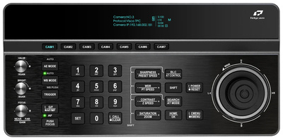 Telycam V-Joy+ AT Black, PTZ Camera Controller with Auto-Tracking Support, Supports auto-tracking at the touch of a button, Compatible with common protocols and interfaces (NDI®HX, VISCA over IP, Serial VISCA, ONVIF, and PELCO P/D - or RS232, RS422, and RS485), Elegant design, Intuitive to use, Joystick for pan, tilt, zoom and auto-focus, 7 camera shortcut keys, 256 presets@+*Technical specifications:*, Control ports: NDI®HX, RS232, RS422, RS48, Auto tracking: Supported, RJ45: Ethernet port, POE(IEEE802.3af), RS232: DB9 Male head, RS422: 3.81 Spacing terminal, T+, T-, R+, R-, RS485: 3.81 Spacing terminal, T+, T-, Upgrade port: Type-C, LCD Screen: 3.12-inch OLED sisplay, Blue Light, 256Ã64 Pixel, Operating voltage: 12 V, Dimensions: 320.5 x 156.5 x 118 mm, Weight: 1.05 kg