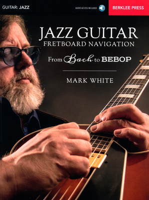 Berklee Press Jazz Guitar Fretboard, Method for Guitar, Textbook for jazz guitar for better coordination on the fingerboard, By Mark White, In standard notation and tablature, ISBN 9780876391723, publisher's no. HL00154107, Format: 23 x 30.5 cm, Including online audio material, Book is in English