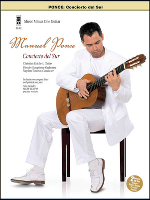 Music Minus One Ponce:Concierto Del Sur Guitar, Classical Sheet Music for Guitar, âConcierto Del Surâ by Manuel Ponce for guitar, In standard notation, With fingerings, Advanced difficulty level, ISBN 9781596157279, publisher Mr MMO3632, Format: 23 x 30.5 cm, 24 Pages, Includes 2 CDs with demo and play-along recordings (guitar recorded by Christian Reichert, accompanying orchestra: Plovdiv Symphony Orchestra, conductor: Nayden Todorov)