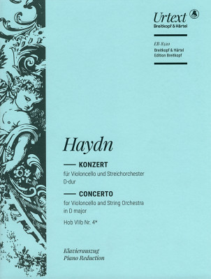 Breitkopf & Härtel Haydn Violoncellokonzert D-Dur, Classical Sheet Music for Cello, Joseph Haydn Cello Concerto in D major Hob VIIb:4 (authenticity disputed), For violoncello and orchestra, Piano reduction, Edited by Christian Klug, Advanced level of difficulty, ISMN 9790004178126, publisher's no. EB 8520, Format: 23 x 30.5 cm, 23 / 12 pages