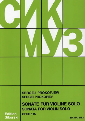 Sikorski Musikverlage Sergei Prokofiev Sonata Op. 115: for solo violin, intermediate to advanced level of difficulty, ISMN 9790003017204, SIK 2152, 21 x 30 cm, 16 pages