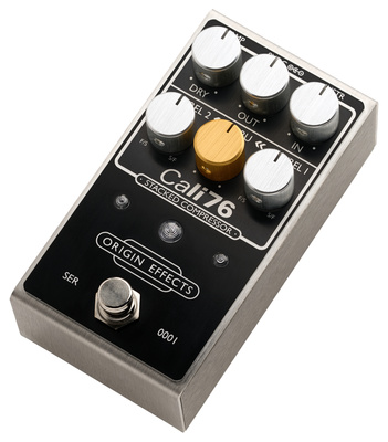 Origin Effects Cali76 V2 Stacked Compr. BK, Effect Pedal for Electric Guitar, Compressor, Two Cali76 compressor circuits connected in series for the ultimate compressed guitar tone, Independent control of each stage, Dry level control for parallel compression, V2 model with more headroom and in a smaller housing, Controls: In, Out, Dry, Att/Rel 1, Thru, Att/Rel 2, LED: Effect On, Gain Reduction 1, Gain Reduction 2, Footswitch: Effect bypass, Input and output: 6.3 mm jack, Power supply connection: Barrel connector 5.5 x 2.1 mm, centre negative, Power consumption: 100 mA, Power supply with a 9 - 18 V DC mains adapter (not included, suitable power supply: Art. #409939#), Dimensions (W x D x H): 64 x 124 x 58 mm, Weight: 553 g, Made in UK@+*Note:* Battery operation is not supported