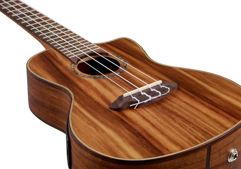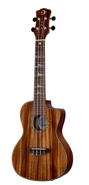 Luna Guitars Ukulele High Tide Koa Concert, Concert Ukulele, Koa body, Nato neck, Walnut fretboard, 20 Frets, Scale: 382 mm, High Tide Abalone fretboard inlays, Abalone rosette, Grover Uke Open-style machine heads, Luna pickup system with preamp, Aquila strings, Colour: Natural, Includes a gig bag