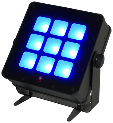 Ape Labs Marvel Flood Install, LED Spot for Outdoor Use, High-performance Pixel LED lamp for outdoor use, suitable for uplighting and stage lighting, Marvel version without a battery; must be powered by mains electricity only, 9 LEDs with 18 W each as controllable pixels, Multipixel presets controllable via app + remote, LED type: 7 mm chip RGB + warm white (2700 K) + cool white (6000 K) + lime, Homogenous light image, Homogeneous colour mix, Complete flexibility in terms of colour, brightness, effects and programmes, Colour rendering index: CRI 90, Beam angle: 150°, Controllable via remote control, smartphone app, wireless DMX, Flicker-free LED control (DUAL-DRIVE Technology, no PWM), Fanless, Automatic signal repeater from lamp to lamp (approx. 1200 m range), Smartphone app for iOS and Android via CONNECT (approx. 1200 m range), Wireless DMX via CRMX (LUMEN Radio / Wireless Solution), Wireless DMX via Ape Labs CONNECT (approx. 1200 m range), DMX Channel Modes: 6-channel: 8-bit RGBWW-NW-L, 12-channel 16-bit RGBWW-NW-L, 7-channel Ape Labs mode, 54-channel 9-pixel mode RGBWW-NW-L, 36-channel 9-pixel mode RGBWW, Network frequency: 2,400 - 2,485 MHz (max. 20 dBm ~ 100 mW), Power Twist TR1 loop socket (V, 100â240 VAC), Theft protection via a motion sensor and an audible alarm, Additional features: Music Mode, pairing of all relevant Ape Labs devices for a secure and stable wireless connection, and cloud-based storage of personal lamp settings, Free software updates for lights, CONNECT and smartphone apps, Regular software updates with new functions and ideas from the Ape Labs community, 2 safety options via bracket or M6 eyelet (included), 360° continuously rotatable bracket with secure stand thanks to fold-out feet with locking notches, Input/Output: Power Twist TR1, IP protection rating: IP65, Housing material: Aluminium, acrylic glass, Dimensions: 28.5 x 26.5 x 8.0 cm, Weight: 3.2 kg, Colour: Black, Includes M6 ring eyelet and Power Twist TR1 connection cable, Made in Germany