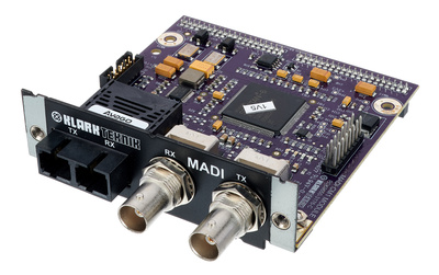 Klark Teknik KT-MADI, MADI Network Module, For up to 64 bidirectional channels @ 48 kHz and 32 channels @ 96kHz, Compatible with Klark Teknik DN9650 and DN9652 Network Bridge as well as Midas Neutron-NB extension module, Operation with up to 500 m optical fiber optic cable or 200 m coaxial copper cable, SC duplex connections, 75 Ohm coaxial BNC connectors, AES10 compatible, Double redundancy with switchover from optical to BNC connection in the event of a fault, Madi clock master, slave or external clock, Module format: Cirrus CM-1 compatible, Dimensions (W x H x D): 110 x 31 x 89 mm