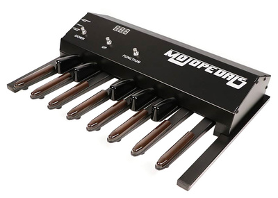Crumar Mojo Pedals Model 2018, 13-Key MIDI Pedalboard with Velocity Sensitivity, MIDI channels selectable from 1 to 16, 2 Switches for value reduction/increase, 1 Function switch for menu, 3-Digit LED display, Transpose by octave or semitone at the touch of a button, Sends MIDI program change events, Input for expression pedal (not included), Class Compliant (no driver required), USB MIDI port allows connection to any Crumar Mojo, GSi Gemini or other USB MIDI device, USB connection for power supply, no additional power supply required, Connectors: USB-B, MIDI-Out, Pedal-In, For use with Crumar Mojo (except Mojo Classic, because only via 5-pin MIDI cable), Dimensions (W x D x H): 570 x 440 x 150 mm, Weight: 9 kg