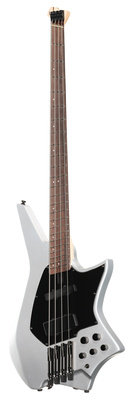 " Hils HZB4 SSV, Headless Multiscale Electric Bass, Body: Mahogany, Bolt-on 5-piece neck: Maple with walnut strips, Fingerboard: Rosewood, Whote dot fingerboard inlays, Neck profile: C, Fingerboard radius: 318 mm (12.5""), Scale: 851 - 876 mm (33.5"" - 34.5""), Nut width: 40 mm (1.57""), 24 stainless steel frets, Pickup: 1 Hils Humbucker (bridge) and 1 Hils Single Coil (neck), 1 volume control with push/pull function for active-passive switching, 1 blend control, 3-band EQ (Bass â Mid â Treble) (Treble acts as a tone control in passive mode), Gain trim potentiometer in the rear cavity, Switch: âTricoreâ humbucker â circuit selector switch: parallel, coil tap, series, Matte black pickguard, Bridge: Alchemy Custom Mono-Rail, Black hardware, Colour: Satin Silver, Includes gig bag"