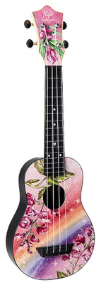 Flight Alyona Shvets Signature Travel, Soprano Ukulele, Top: Basswood, Arched back and sides: ABS, Neck, fingerboard and bridge: ABS, Scale: 355 mm, Nut width: 35.60 mm, 15 frets, Fingerboard markings at the 5th, 7th, 10th and 12th frets, Open individual machine heads, Colour: Alyona Shvetz Signature Design, Includes gig bag