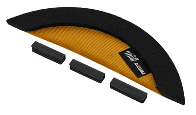 " Rohema Mr. Muff MuffBite 10"", Magnetic Felt Damper, Size: 10"", Material: Felt ring with cotton cord fabric, Secure and stable attachment with magnets, Covers one third of the drumhead surface, Direct drumhead contact for soft and quiet playing, Can be used on batter and resonant drumheads, Damping of the resonant drumhead reduces overtones and provides a controlled, more precise and drier sound and less sustain, Damping of the batter head reduces overtones and provides a warmer sound, more punch and less sustain, Colour: Black and Ochre, Includes three metal clamps for attachment to cast iron hoops"