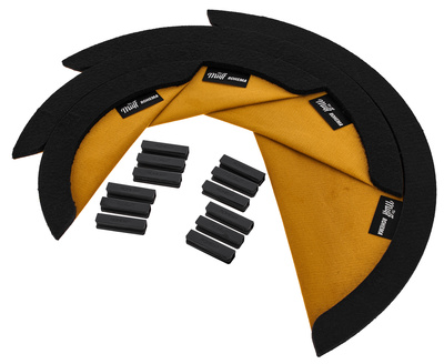 " Rohema Mr. Muff MuffBite Set, Set of Magnetic Felt Dampers, Sizes: 10"", 12"", 14"", 16"", Secure and stable attachment with magnets, Covers one third of the drumhead surface, Direct drumhead contact for soft and quiet playing, Can be used on batter and resonant drumheads, Damping of the resonant drumhead reduces overtones and provides a controlled, more precise and drier sound and less sustain, Damping of the batter head reduces overtones and provides a warmer sound, more punch and less sustain, Colour: Black and Ochre, Includes three metal clamps for attachment to cast iron hoops"