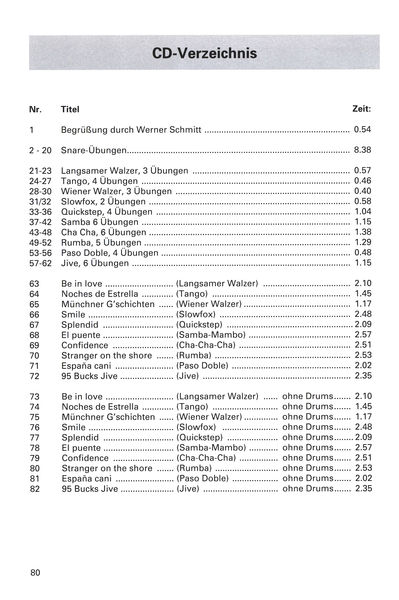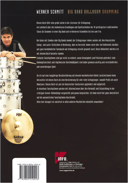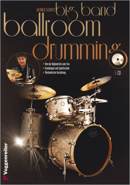 Voggenreiter Big Band Ballroom Drumming, School for Drums, Textbook for Big Band Drumming, By Werner Schmitt, With exercises for standard and latin dances, ISBN 9783802410246, catalogue no. VOGG 1024-6, Format: DIN A4, 80 Pages, In German language, Includes CD with demo and play-along recordings
