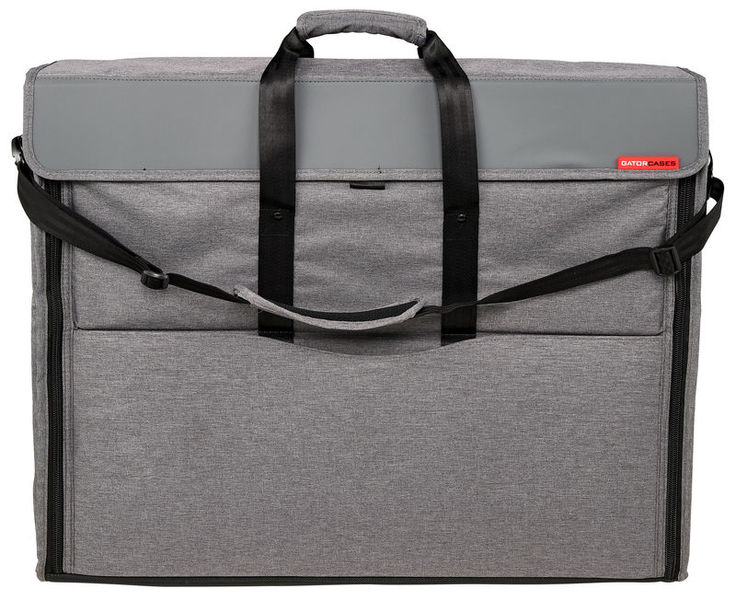 " Gator iMac 27"" Tote Bag, Nylon bag for 27"" Apple iMac, Good hold and protection with adjustable foam blocks and hard-panel reinforcement in the front cover, Foldable sun and dust protection, Double zipper, Cable bag inside, Outer accessory pocket for keyboard, mouse, SD cards etc., Strap and handle cutouts, Reinforced and removable carrying handles, Water repellent, PVC protection on the bottom, Inner dimension: 673 x 533 x 216 mm, External dimensions: 724 x 559 x 228 mm, Weight: 4.5 kg, Colour: Grey"