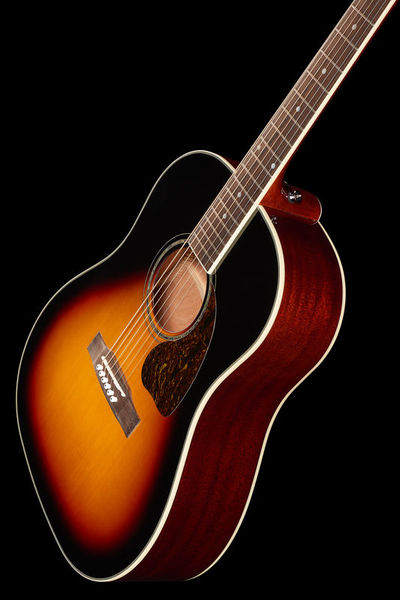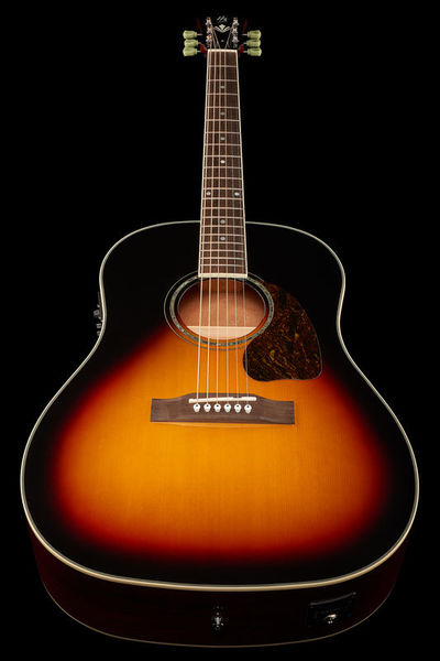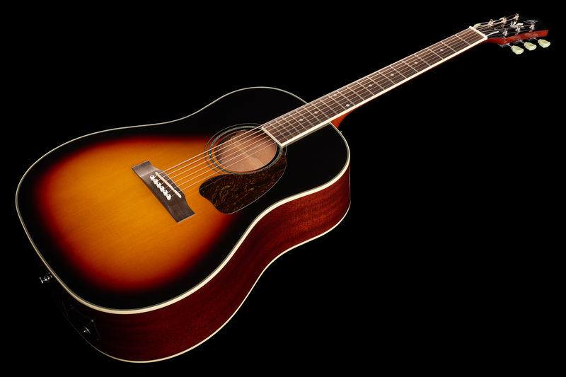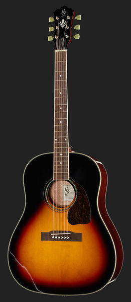 Harley Benton Custom Line CLJ-45E VS, Steel-String Guitar, Vintage Solid Series, Round shoulder dreadnought design, Solid sitka spruce top, Mahogany body and neck, Ovangkol fretboard, Radius: 400 mm, Scale: 648 mm, Nut width: 43 mm, 20 Frets, Dots fretboard inlays, Ovangkol bridge, Bone nut, Cream body binding, Double action truss rod, Keystone vintage chrome machine heads, Strings: Adamas 1818NU (Art. #438774#), Pickup system: Fishman Presys-II preamp with integrated tuner, Colour: Vintage Sunburst (high-gloss)