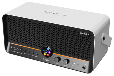 " Mooer F40i Li Model.Guitar Combo SW, Battery-Powered Modelling Combo for Electric Guitar, Class D stereo amplifier, Transistor / solid-state design, Power: 40 W (RMS), Built-in lithium rechargeable battery with up to four hours of runtime, Equipped with two 4"" speakers, 1.28"" round touchscreen for quick switching between presets and direct access to the tuner on the device, Built-in Mooer iAmp 2.0 effect system, 55 high-quality digital replicas of popular amps based on MNRS technology, 69 classic and experimental effects, Built-in chromatic tuner, Bluetooth 5.0 connection for AUX input, Built-in drum machine with 60 drum grooves and ten metronome variations, 60 second looper, can be synchronised with drum machine, Special iAMP app for complete effects editing, firmware updates and loading sounds to and from the Mooer Cloud, Mooer AI in the iAMP app assists with the creation of user presets, Support for control with wireless Mooer F4 footswitch, Controls for Value and Master, Gain control for microphone input, Switchable 48 V phantom power, Instrument input: 6.3 mm mono jack, Microphone input: XLR, Headphone output: 3.5 mm stereo jack, Line output: Two 6.3 mm mono jacks, USB type-C port for direct OTG recording or audio playback, Power via included 19 V / 2.5 A power supply, Dimensions (L x W x H): 394 x 177 x 179 mm, Weight: 3.95 Kg, Colour: Snowfall White, Includes carry handle, USB-C to USB-A cable and quick start guide@+*Note:* This product's performance is linked to its firmware version. In addition to optimised operational reliability, firmware updates sometimes also offer a wider range of device functions. Check the manufacturer's website regularly for new firmware versions and update your device if necessary to enjoy new features."