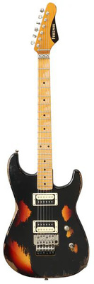 " Friedman CALI-ACMRN-J0R-NQ52-CVB2, Electric Guitar, Body: Alder, Bolt-on neck: Maple, Fingerboard: Maple, Black dot fingerboard inlays, Compound fingerboard radius: 241 mm - 305 mm (9.5"" - 12""), Scale length: 648 mm (25.5""), Bone nut, 22 frets, Pickups: 2x Friedman Classic Plus Humbucker, 1x volume control, 3-way toggle switch, Floyd Rose tremolo, Plek-machined fretwork, Nickel hardware, Finish: Medium aged, Nitrocellulose lacquer, Colour: Black over 2-Tone Burst, Includes case, Made in USA"